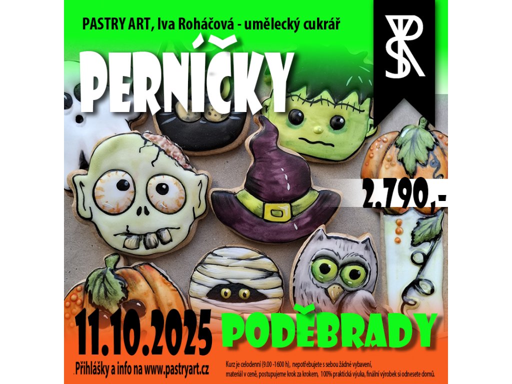 Celodenní (9-15h) kurz, kde se naučíte zdobit pomocí tzv. 2D techniky, pokrytí celého perníčku glazurou, barevné efekty a textury. Řekneme si vše o recepturách, technologii pečení i skladování. Tentokrát téma Halloween, v Poděbradech.