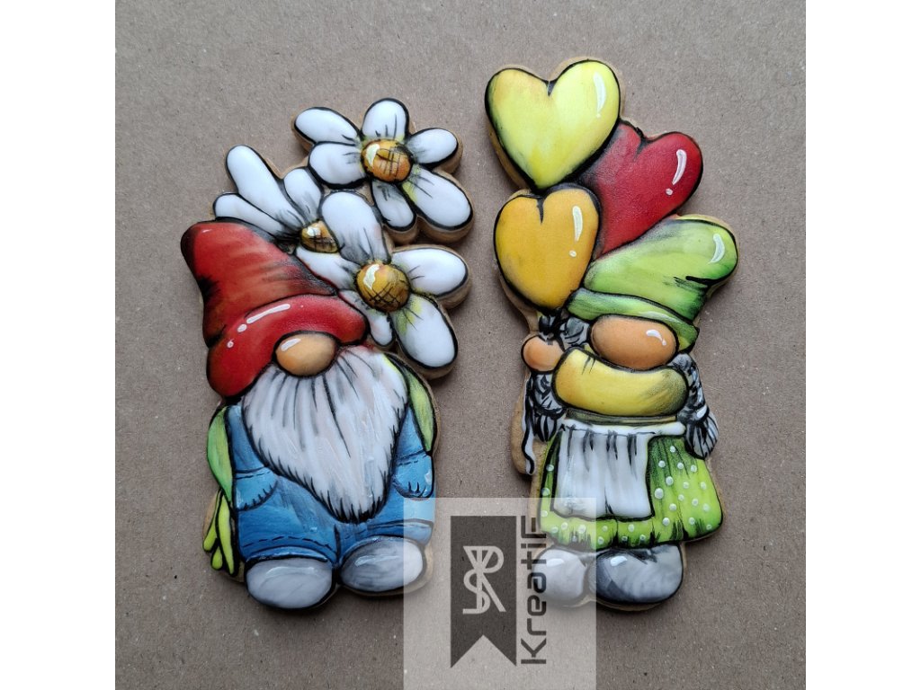 Elf with flowers, cookie cutter with hints of details.