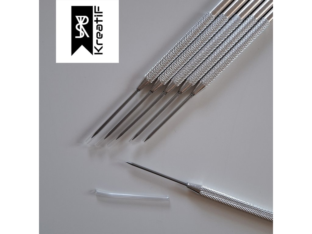 Jehla, která vám pomůže upravit glazuru a vyhladit bublinky. Je lehká, hladká, s vroubkovanou částí pro lepší držení, pevná, s ostrou špičkou a kulatým koncem vhodným na modelování. Celková délka 15,5cm, délka hrotu 4cm.