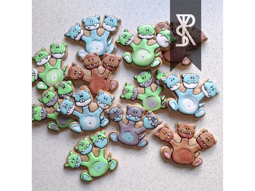 Složení: cukr, pšeničná mouka, máslo, med, vejce, kypřidla-jedlá soda (hydrogenuhličitan sodný), perníkové koření (skořice, badyán, anýz, hřebíček) . Royal icing mix: třtinový cukr, vaječné bílky, kyselina citronová, protispékavá látka fosforečnan vápenatý. Dekor: Barvy: zelená: - E110, - E102, E133, červená E129, E110,E102, růžová: E171, E129, černá E150d, E151, E171, žlutá E 102, modrá E 133, zlatá E422; barviva: E171, E172; regulátor kyselosti: E330; konzervant: E202 Upozornění: E102, E110, 122, 124, 129- může mít nepříznivý vliv na pozornost a aktivitu dětí! ALERGENY – může obsahovat stopy lepku, laktózy, vajec, arašídů, ořechů a sóji.