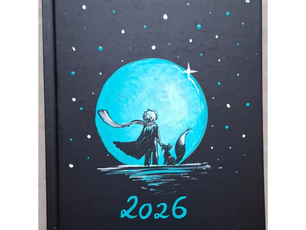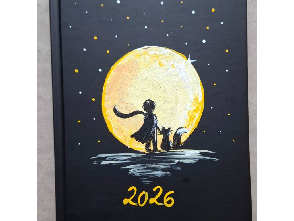 Diář na rok 2026, formát denní A5. Ručně malovaný motiv na titulní straně, náš milovaný Malý princ.