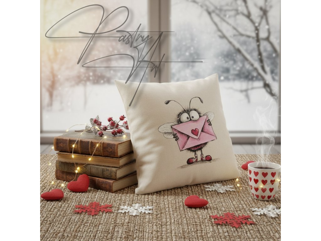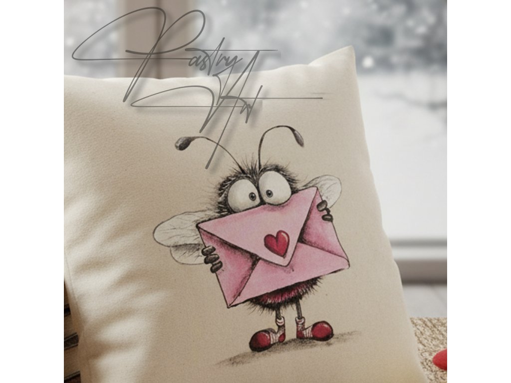 Povlak na polštář, ručně malovaná moucha zamilovaná ;-)
