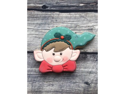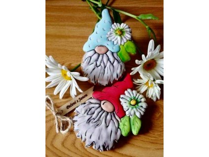 Skřítek s kytičkami, vykrajovátko s naznačením detailů. Elf with flowers, cookie cutter with hints of details.